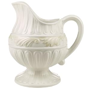 Made in Italy, the Lenox Butler's Pantry Earthenware line features ivory ceramic dinnerware and serveware with sculptural patterning and cream-colored accents. The pieces are perfect for setting an elegant table, hosting a holiday party, or dressing up a daily meal. All Butler's Pantry Earthenware is covered by Lenox's lifetime replacement policy. With its ample proportions, this Earthenware creamer lasts through multiple rounds of after-dinner coffee, tea, or strawberries. The footed piece features a pleasantly round, ivory-colored body with wide fluting and a decorative band of slightly darker cream-colored leaves. Wide at the opening, the creamer is easy to fill, while a tapered spout ensures pouring control. The handle is smooth and generous, finishing in a single scroll at the lower end. A handsome match to Lenox's Earthenware sugar bowl, the creamer measures 6 by 5 by 6-3/4 inches. Washing by hand is recommended. --Emily Bedard