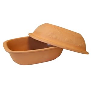 The classic glazed Schlemmertopf is made in Germany. It provides you with options in cooking as it can be used in either the oven of the microwave. It provides healthy cooking options for you, and comes with an instruction book and cook book. The top is unglazed and allows the moisture to cook into the food. The bottom is glazed inside and makes for easy cleanup and the ability to cook meats and sides together This size serves 3-6 people..